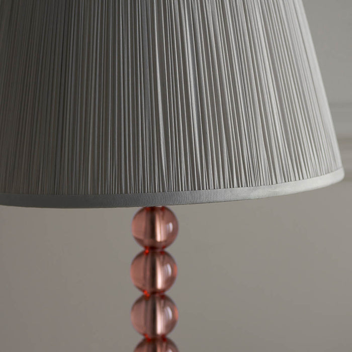 Freya Silver Fabric Shade Table Lamp With Adelie Blush Tinted Glass Base