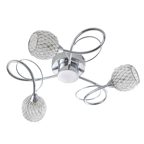 The Aherne 3 light flush finished in Polished Chrome will add style to any room, featuring mesh shades encrusted with clear glass beads. Suitable for use with LED G9 lamps.