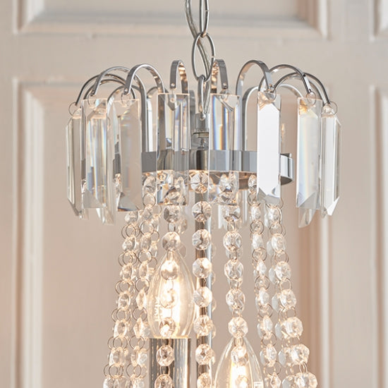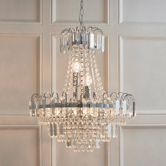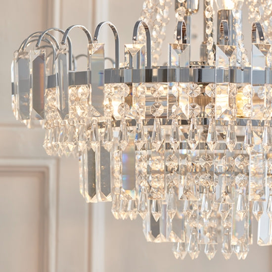 A luxuriant mix of faceted clear glass and polished chrome creates a stunning centre piece to complement any room.