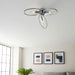 Clear glass framed by a soft modern ellipse shape in chrome plate. A dimmable semi flush perfect for low ceilings. Other colour way also available.