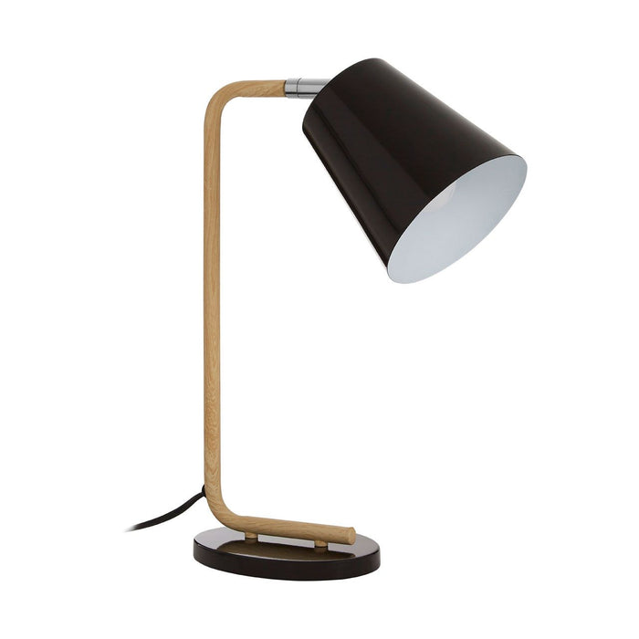 Bruin Black Metal Shade Table Lamp With Natural Wooden Stalk