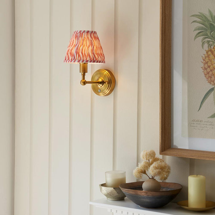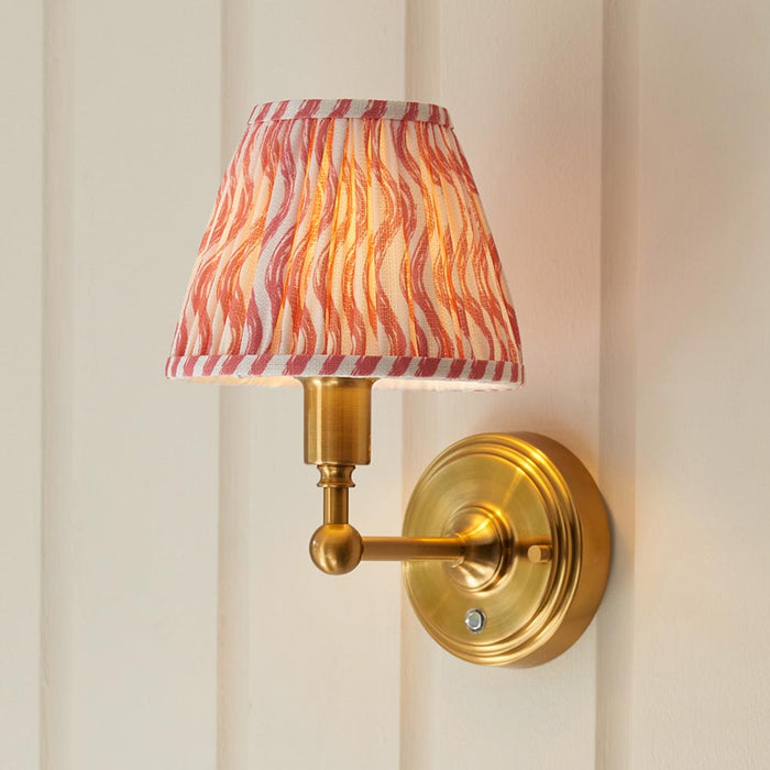 Burley Rechargeable And Ripple 16cm Coral Pink Shade Wall Light In Brushed Aged Brass