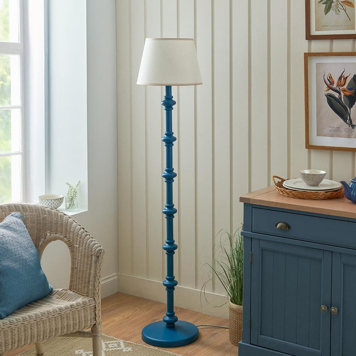 Carnaby And Ivy 35cm Vintage White Shade Floor Lamp With Satin Marlin Blue Base