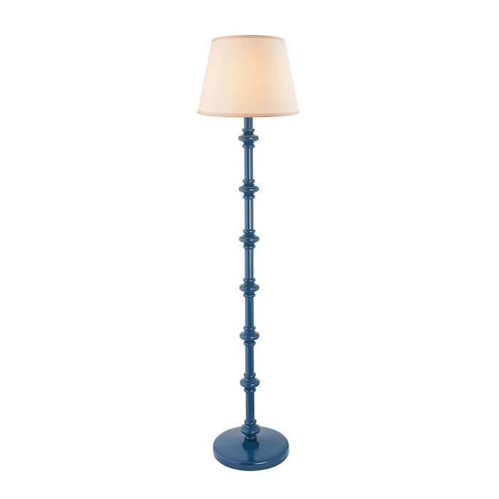 This unique wooden turned spindle floor light is inspired by past design styles with a fresh update. Painted in classic satin Marlin Blue, with a brass B22 switched lamp holder and grey braided fabric flex. Each product is turned on a wood lathe by hand and will be unique; any variants in finish are part of the individual charm of the product. This floor light is finished with our vintage & Marlin Blue 35cm Ivy shade for a unique, classic style.