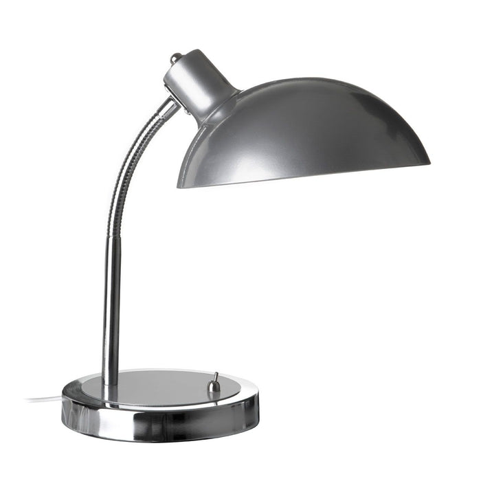 Stylish and practical, the adjustable desk lamp with its chrome flexible stem will ensure you get the light required when working on that important paperwork. The flexible stem allows you to effortlessly adjust the lamp to the position that best suits you, so you can clearly see what you are doing. Lightweight yet durable, the lamp combines chrome with a neat Grey that will complement a modern setting. The adjustable desk lamp will allow you to direct the light where you need it so you can work into the small hours. The round base ensures stability, while the switch allows you to control the lighting with a flick of the finger. The flexible desk lamp adds function and style to your desk, providing you with the light you need.