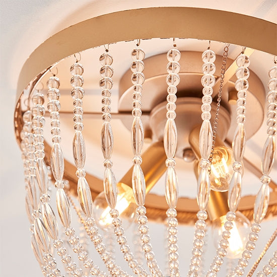 Celine 3 Lights Clear Glass Beads Flush Ceiling Light In Rose Gold