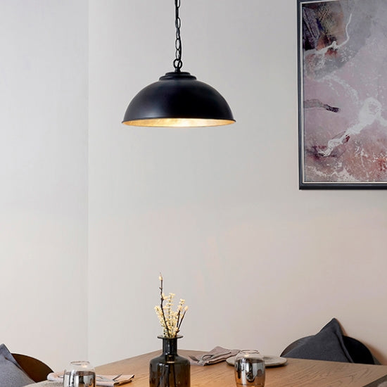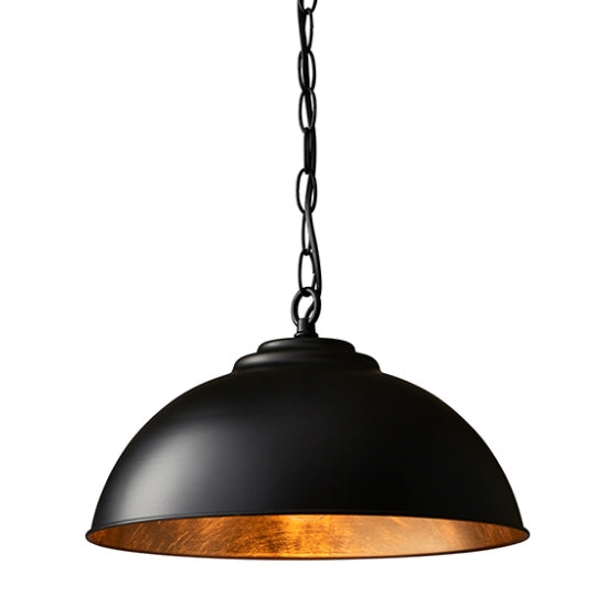 This Colman pendant has a Matt Black finish and a shimmering gold leaf inner for a touch of opulence. suitable for use with LED lamps, dimmable and the drop is adjustable at time of fitting.