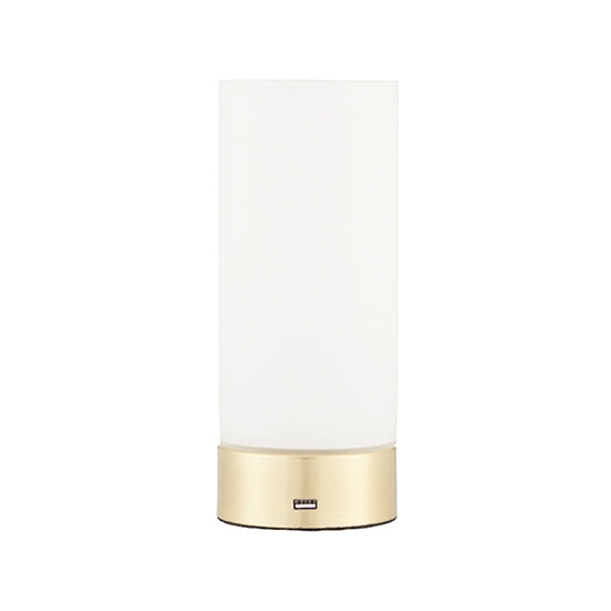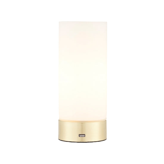 Dara USB Opal Glass Table Lamp In Brushed Brass