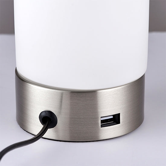 Dara USB Opal Glass Table Lamp In Brushed Nickel