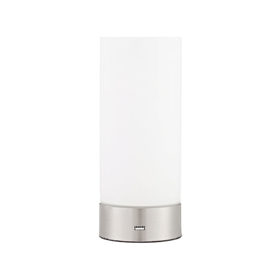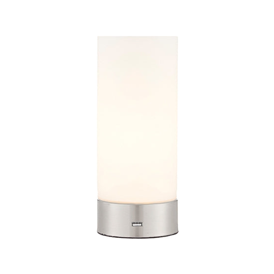 A sleek dual purpose table light finished in a brushed nickel effect plate, with a matt opal glass shade. This light is operated by clever 3 stage touch technology, plus has the addition of a discreet USB port meaning it can charge your devices too.