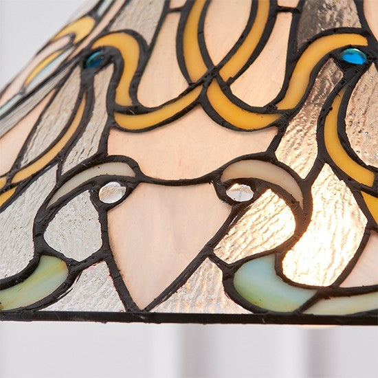 • Tiffany glass & dark bronze finish with highlights