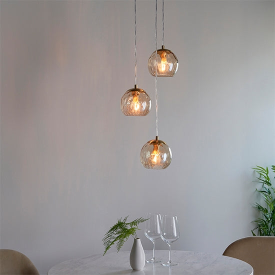 Dimple 3 Lights Glass Shades Ceiling Pendant Light In Champagne
