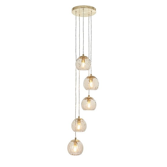 Dimple 5 Lights Glass Shades Ceiling Pendant Light In Champagne