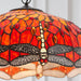 The large Dragonfly pendant in Flame is a traditional interpretation of the iconic Tiffany Dragonfly design, in natural muted colours with coloured glass beading and teamed with a dark bronze effect fitting. Compatible with LED lamps, dimmable and matching items available.