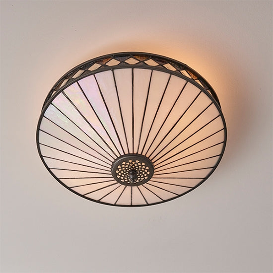 Fargo Medium 2 Lights Tiffany Glass Flush Ceiling Light In Dark Bronze