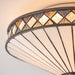 This Tiffany style wall light is a beautifully understated design comprising of clean lines with a diamond shaped border. Dimmable and compatible with LED lamps. Matching items available for a coordinated look.