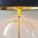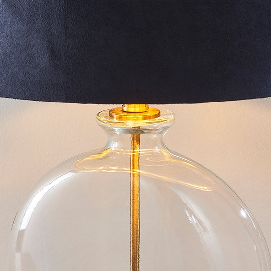 This stunning table lamp is very on trend with a clear glass base, antique brass detailing and a gorgeous velvet shade for the ultimate in designer touches.