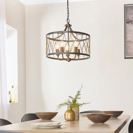Heston 5 Lights Ceiling Pendant Light In Matt Black And Rustic Bronze
