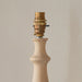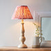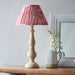 An elegant country classic style table light, hand turned in solid natural wood finish. With switched brass B22 lamp holder and grey braided fabric flex. Paired with our vibrant coral pink 30cm Ikat shade to complete the look.