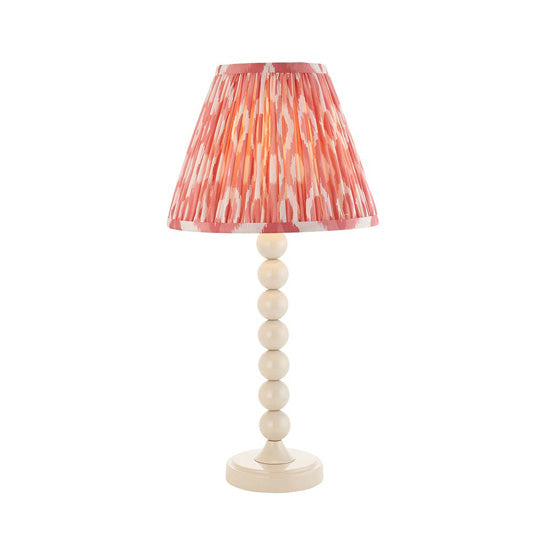 Higgledy And Ikat 25cm Coral Pink Shade Table Lamp With High Gloss Almond White Base