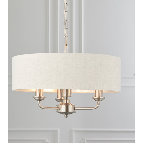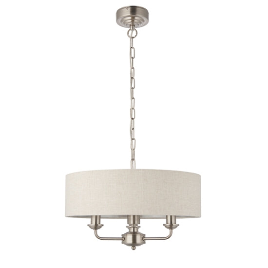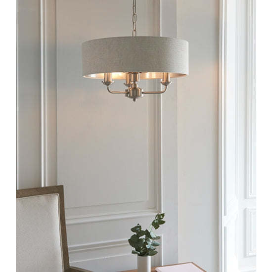Highclere 3 Lights Natural Linen Shade Ceiling Pendant Light In Brushed Chrome