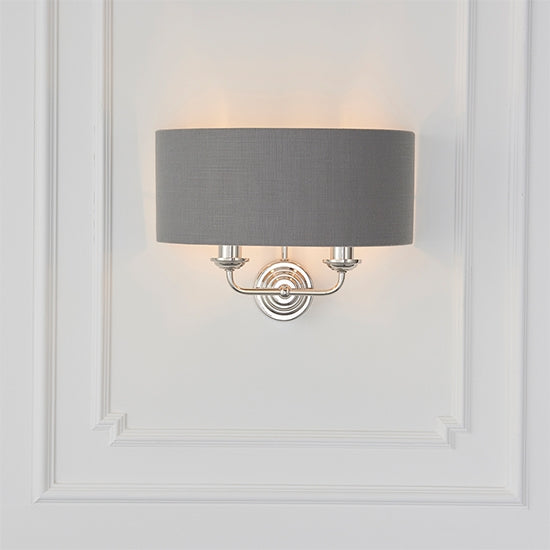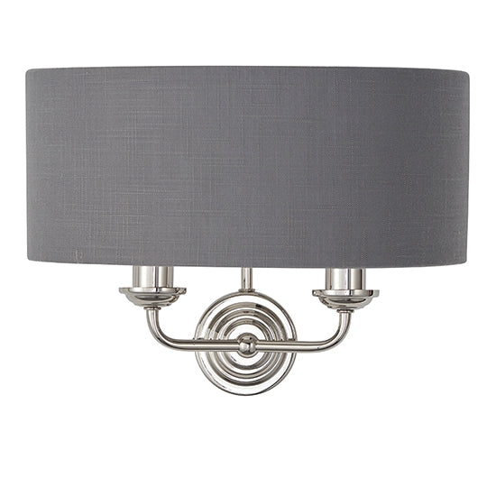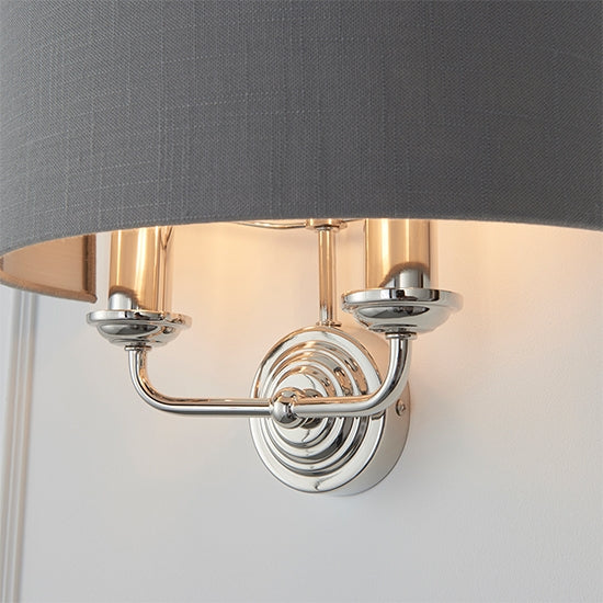 Highclere Charcoal Linen Shade 2 Lights Wall Light In Bright Nickel