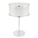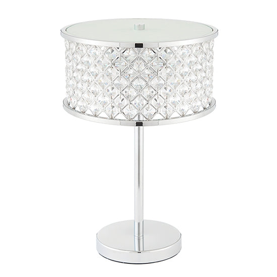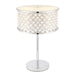 A 2 light table light with a polished chrome finish. The shade is made of crystal beads with an opal diffuser to the top. Supplied with an inline switch and suitable for use with LED lamps. Matching items available.