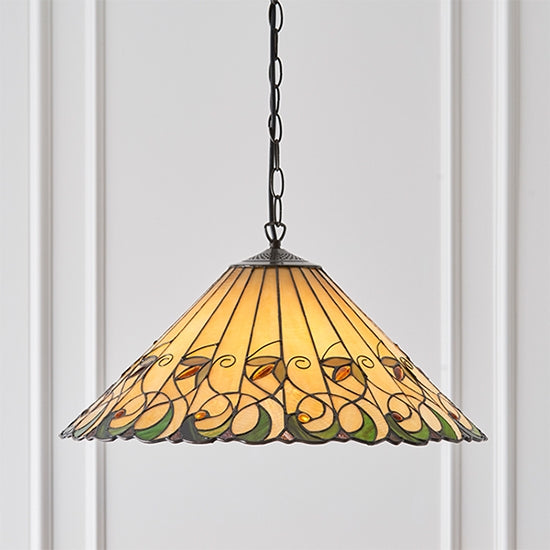 This pretty Jamelia large flush ceiling fitting features subtle colours and amber glass beads. Dimmable and compatible with LED lamps.