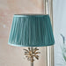 The tall chic Leaf table lamp cast in aluminium and finished in a polished nickel, decorated with delicate leaf detailing has been teamed with the gorgeous 14 inch Freya pleated silk shade in Fir to complete the look.