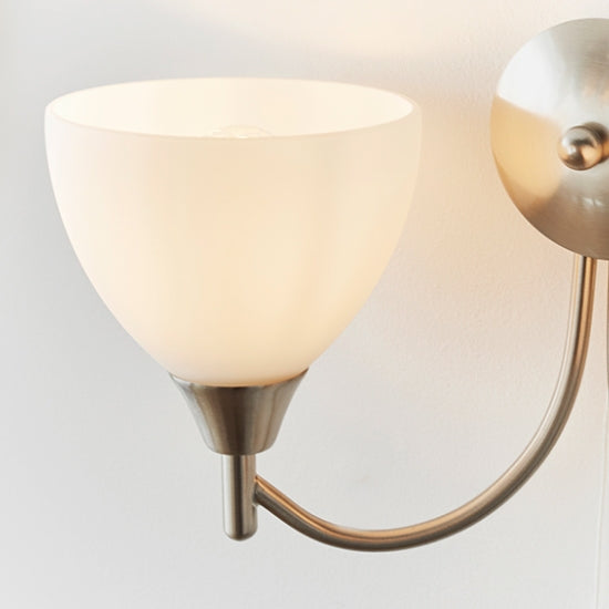 Lightson Matt Opal Glass Shade 2 Lights Wall Light In Satin Chrome