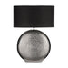 A striking feature even when the light isn't on, ensures the table lamp, with its chic hammered effect, will make a wonderful addition in your home. The circular base is durable, sturdy and with its chrome hammered finish effect the stylish lamp will make a great feature in your home radiating light and elegance into the room. Complementing the base is the chic black fabric shade that will emit a soft warm glow to the surrounding area. The eye-catching table lamp will complement a modern setting while enlightening the room. A sleek ceramic table lamp that adds boutique hotel style to the living room or bedroom.