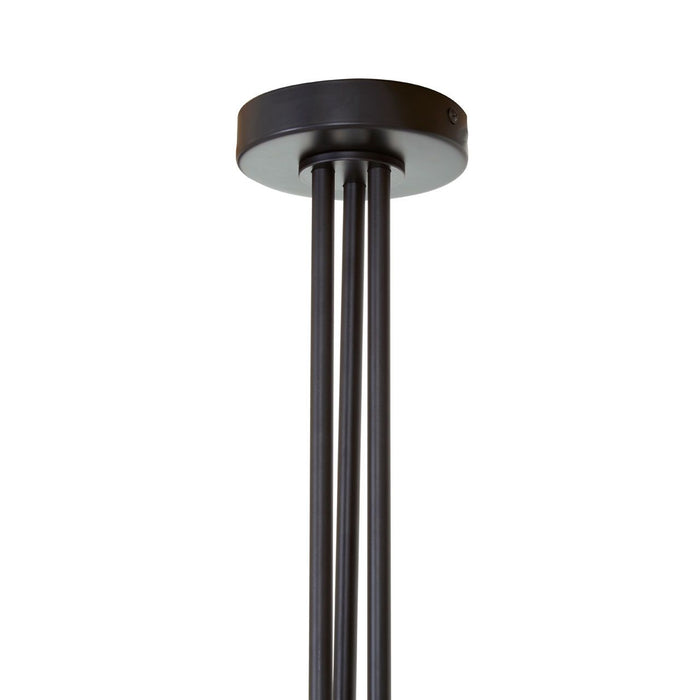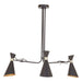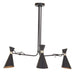 The Linox pendant light adds a touch of modern retro design to the living room. This Linox pendant light has three cone-shaped shades pointed downwards with black finish and warm metallic inside. Their bent iron rods attached to the canopy gives an industrial style touch.