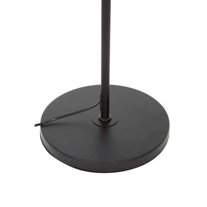 The Linox black shade floor lamp adds a touch of contemporary retro design to living room. This Linox floor lamp has a thin metal stem and a cone-shaped shade. The shade is connected to its weighted round metal base through a repositionable angular rod which holds up the lamp.