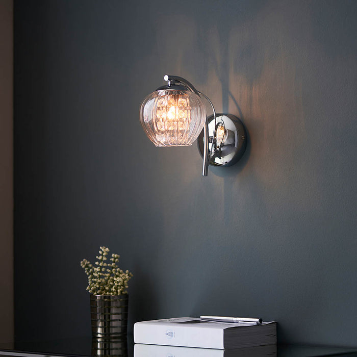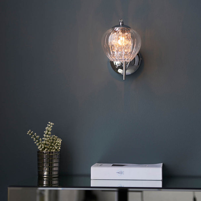 Mesmer Clear Ribbed Glass Shade Wall Light In Chrome