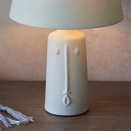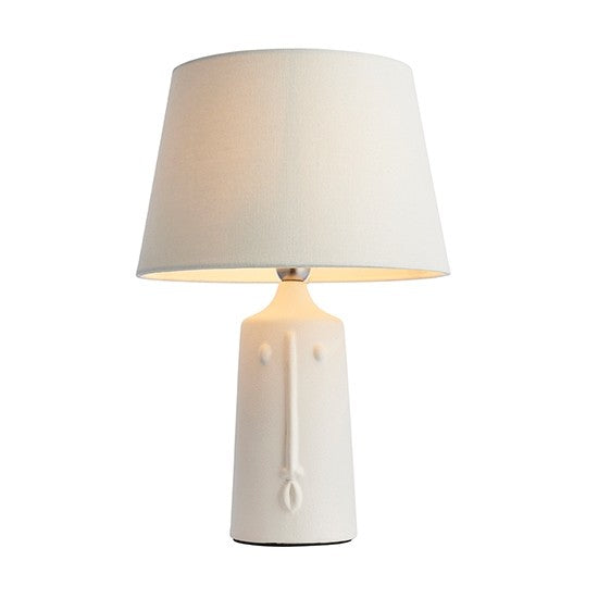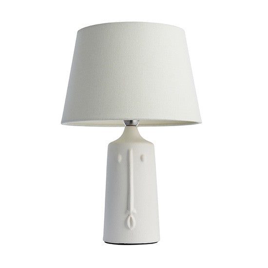 Mr Cici Ivory Linen Mix Tapered Shade Table Lamp In Matt White Ceramic Base