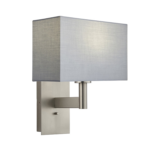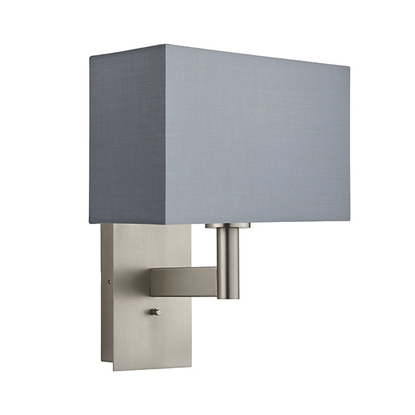 Owen Rectangular Grey Shade Wall Light With USB In Matt Nickel