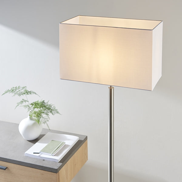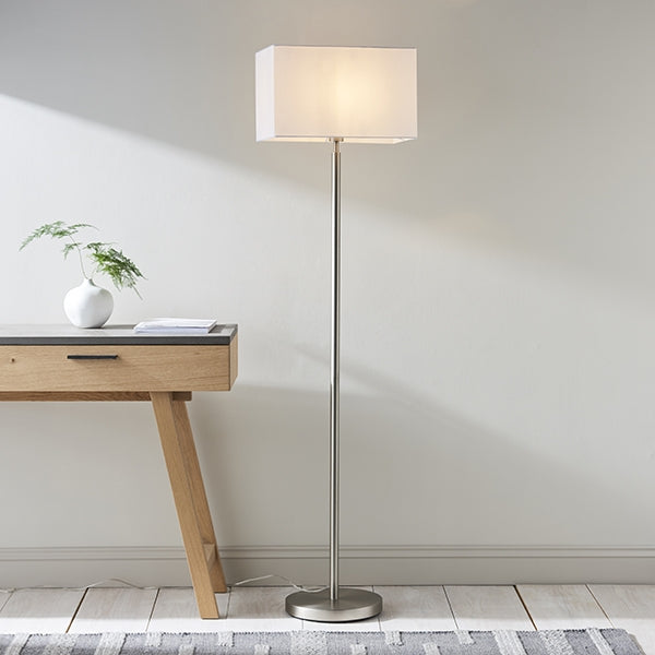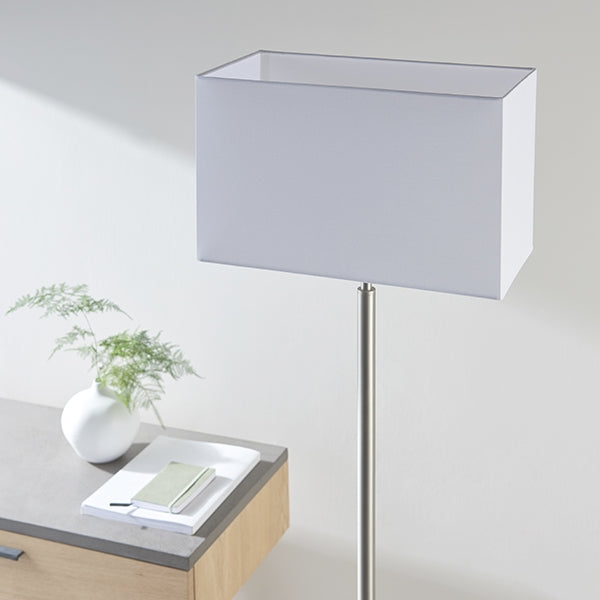 Owen Rectangular White Shade Floor Lamp In Matt Nickel