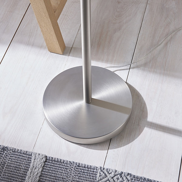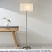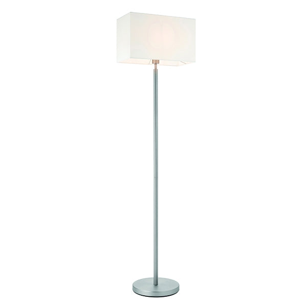 The Owen floor lamp is a timeless, modern, clean line design, featuring an easily accessible lamp holder on/off switch. The perfect addition to boutique style bedrooms or living areas, finished in smart matt nickel plating and twined with a vintage white fabric rectangular shade.