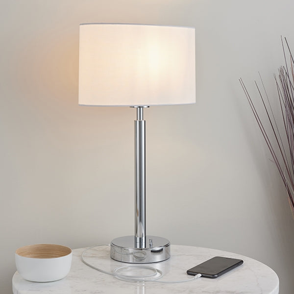 Owen White Ellipse Shade Table Lamp With USB In Polished Chrome