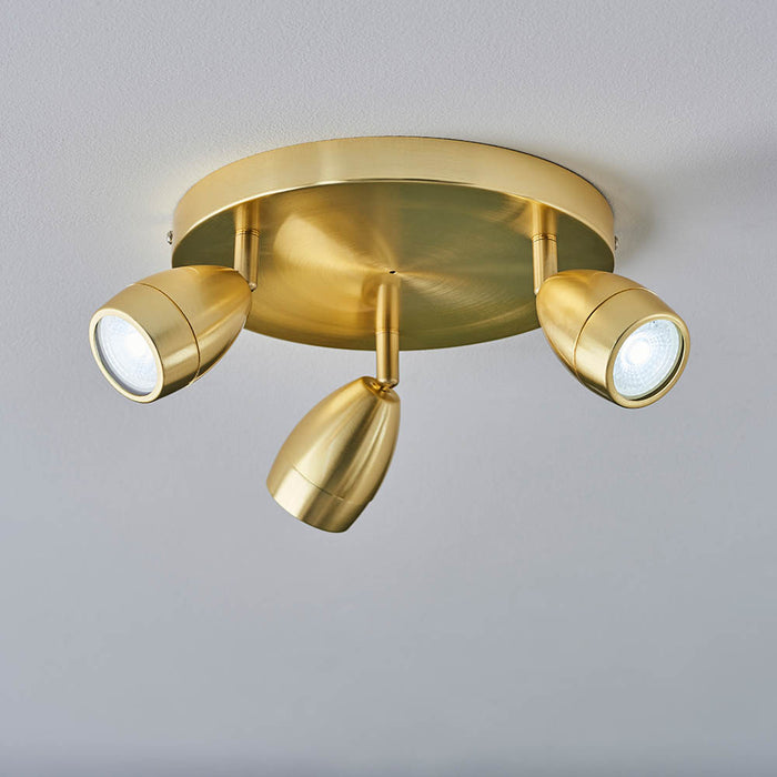 Porto 3 Lights Spotlight In Satin Brass With Clear Glass Diffuser