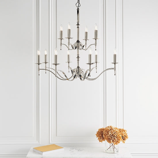 Stanford 12 Candle Lamps Ceiling Pendant Light In Polished Nickel