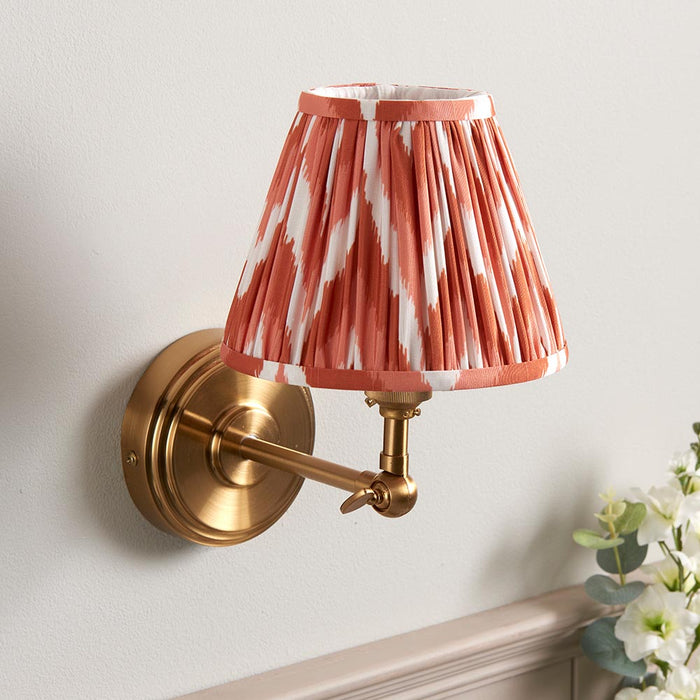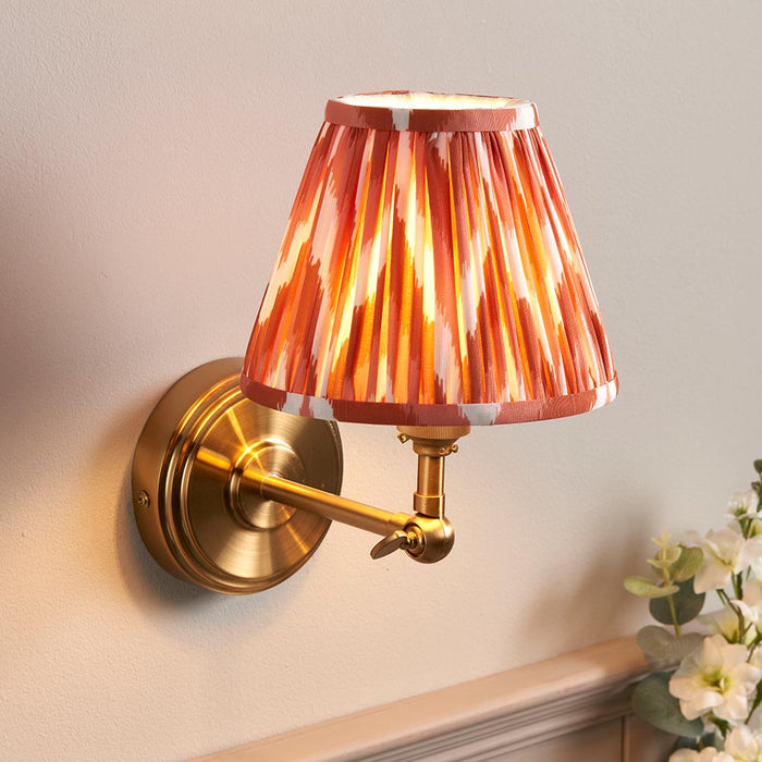 A classic stepped wall light with simple linear arm, featuring an adjustable knuckle to angle the wall light for that authentic classic look. Perfect for bedsides, hallways and lounge spaces. Finished in brushed aged brass, complete with our bright apricot orange 16cm Zigzag shade.