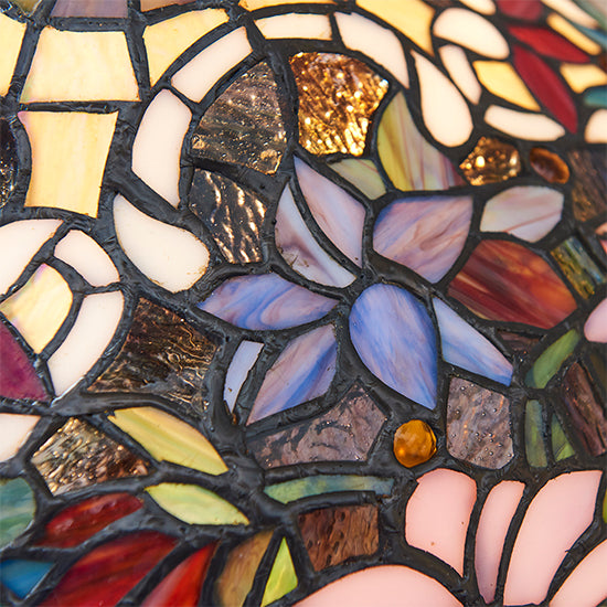 The Sullivan small table light is a richly coloured floral Tiffany design, teamed with a dark bronze effect fitting. Matching items available and compatible with LED lamps.