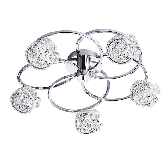 Talia Clear Crystal 5 Lights Semi Flush Ceiling Light In Chrome