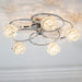 The Talia ceiling light features clusters of inter-linked clear glass crystals, carefully joined to polished chrome plated looping arms, creating a decorative sculptural look. This eye-catching light is both practical and stylish and looks at home in a wide range of interiors.