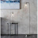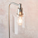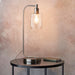 A modern table light for contemporary interiors. Brushed nickel finish with clear glass shade and inline switch.