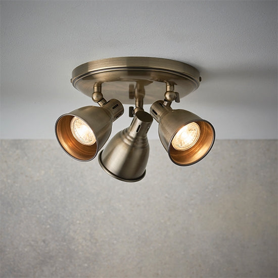 Westbury 3 Lights Round Ceiling Light In Antique Brass