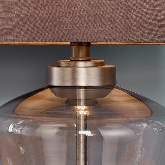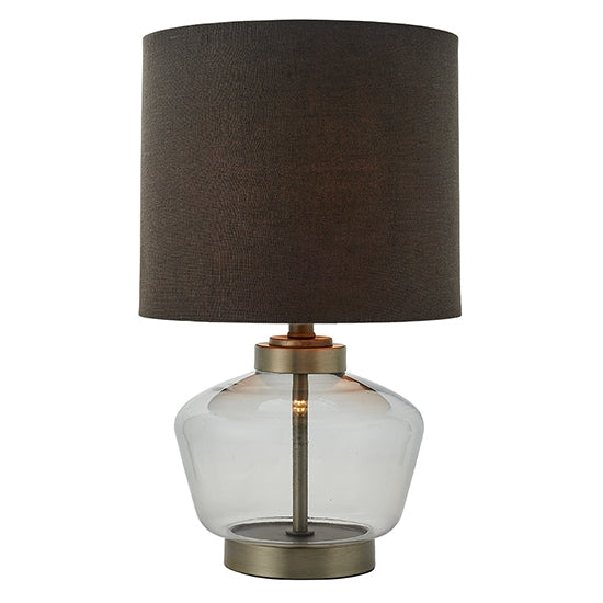 Zen Dark Charcoal Linen Shade Table Lamp In Smokey Grey Tinted Glass